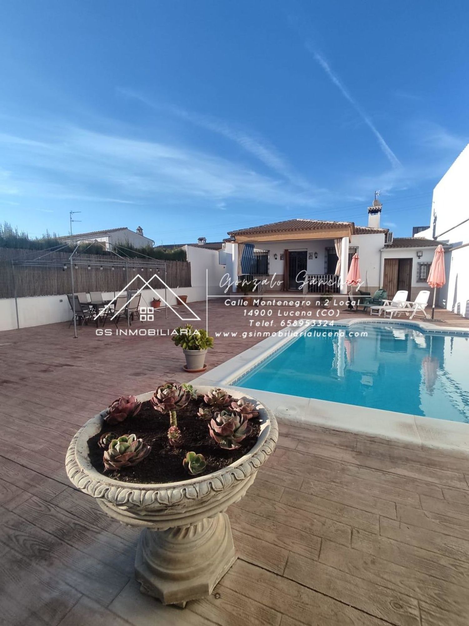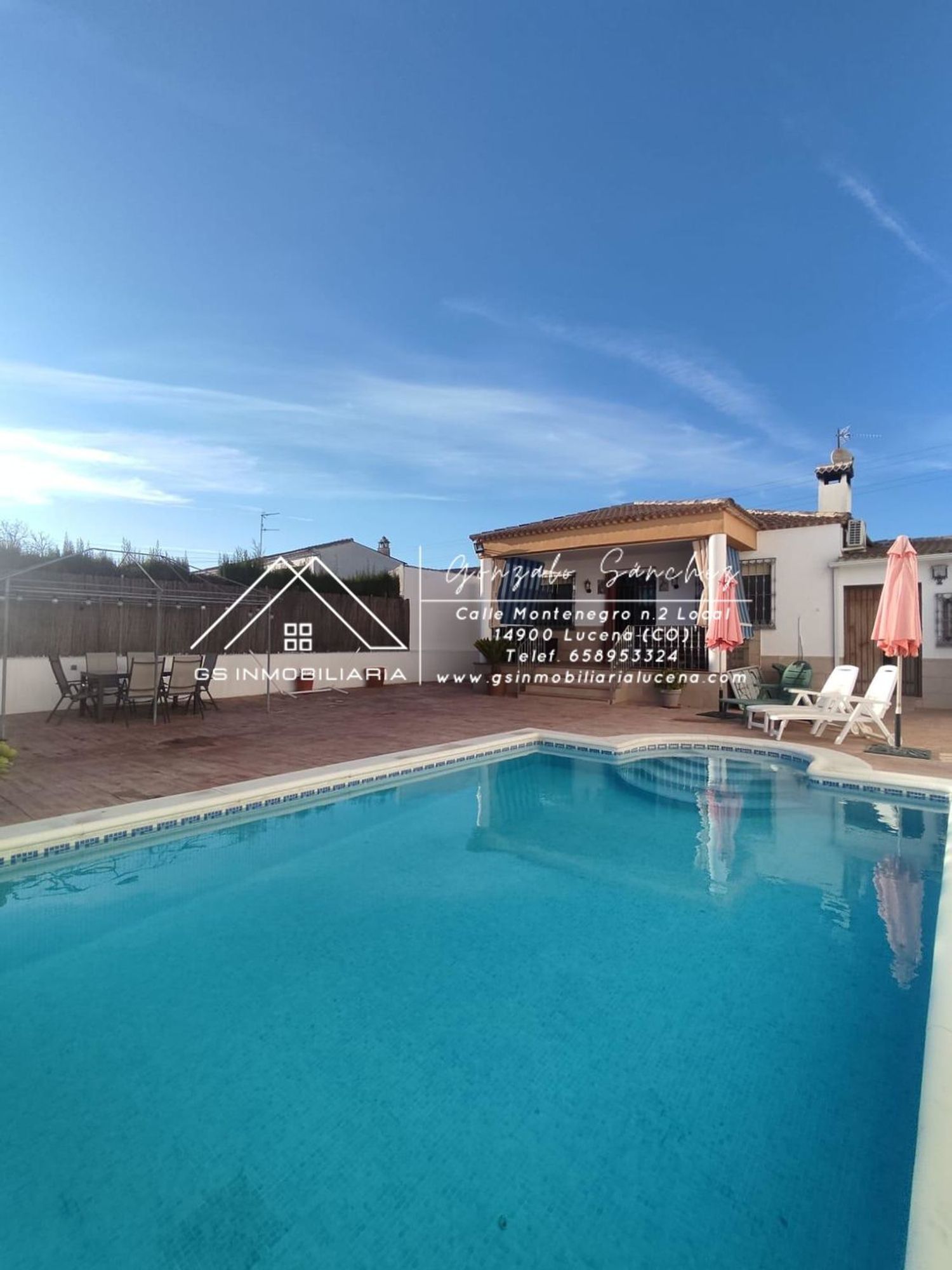 Parcela de unos 450 metros aproximadamente, casa de tres dormitorios, vestidor en dormitorio, cocina, amplio salón con chimenea, cuarto de baño completo con placa de ducha, sala para eventos, zona de parking, piscina, puerta exterior motorizada, luz propia, agua de pozo.[IW]
