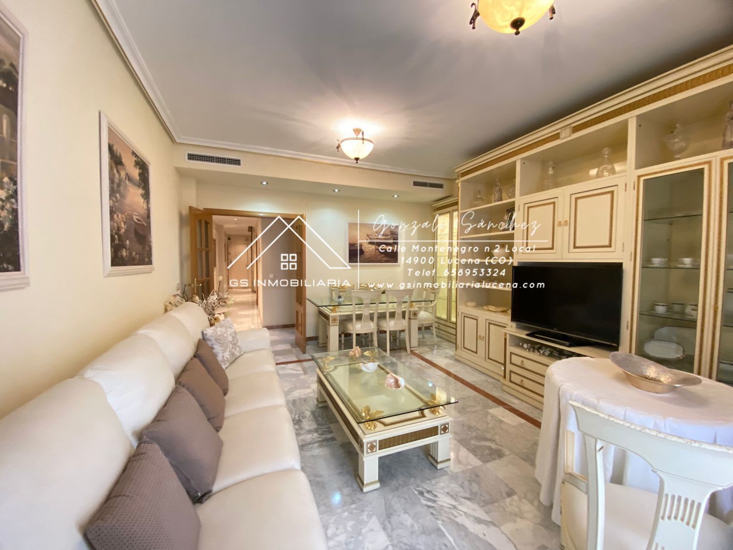 Espectacular piso duplex centro de lucena ubicado en una primera planta con ascensor consta de 4 habitaciones amplias 3 cuartos de baño completos cocina independiente salón salita patio terraza privada suelos de marmol split de aire acondicionado armarios empotrados suelos de marmol acabados de calidad exterior amueblado tal y como se ve en fotos plaza de parking en el mismo edificio, directo con ascensor, incluida en el precio.[IW]